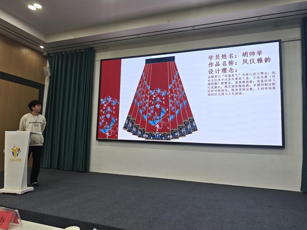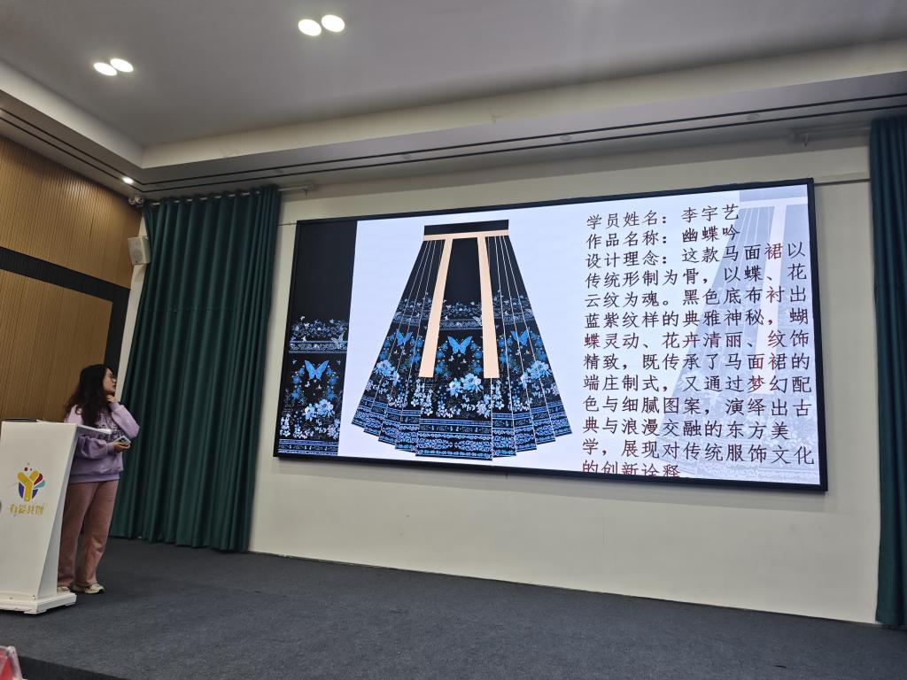 学生们在山河锦绣研学基地开启系统化学习。在学校与企业技术骨干的指导下,学生们首先进行了汉服款式、色彩与图案的设计,继而深入生产一线,先后学习汉服从版型打样到剪裁缝制的全流程工艺,重点研究了马面裙的裙门工艺、褶裥处理及交领上衣的领口弧度设计、盘扣制作等核心技艺。期间,同学们认真记录工艺要点,积极向企业导师请教学习,最终完成了自己的汉服设计与制作。
