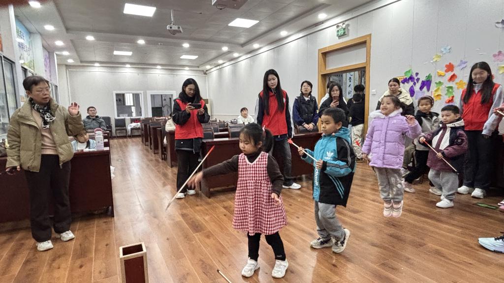 活动中,学院志愿者精心布置活动场地,准备教学物料,并组织小朋友们开展传统“投壶”互动游戏,迅速拉近彼此距离。在知识讲解环节,志愿者借助生动形象的PPT课件,围绕面料的组成类别、功能特性及其应用场景进行系统介绍,以通俗语言阐释“面料超能力”背后的科学原理。其间穿插脑筋急转弯等趣味互动,引导小朋友们举手回答问题,在轻松氛围中加深他们对面料知识的理解。同时,在手工制作环节,志愿者开展一对一指导,协助小朋友们动手完成个性化面料手工作品。现场气氛热烈而欢快,小朋友们在游戏中不仅巩固了新学的面料知识,也感受到了动手实践的乐趣。