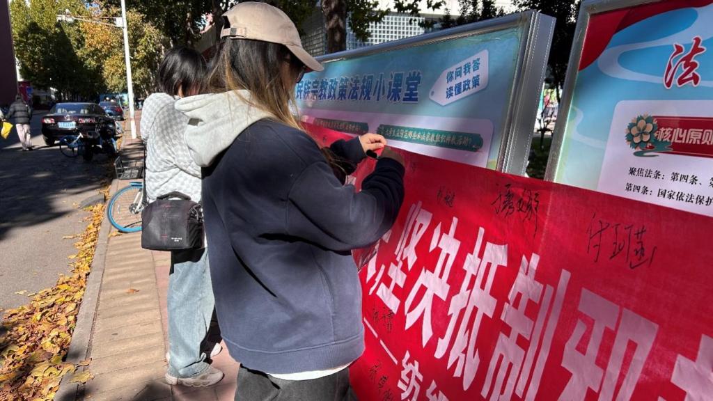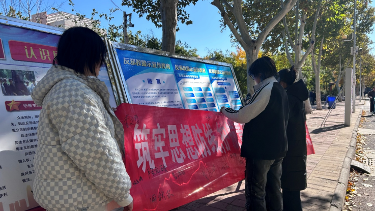 在反邪教主题展板前,同学们一同了解了与反邪教相关的案例、法律知识及防范要点等内容。展板深刻揭示了邪教的本质特征与社会危害,展现了邪教对个人、家庭及社会造成的危害,参观学生不时交流讨论,对邪教的欺骗性和危害性有了更加直观的认识。随后,师生们在“筑牢思想防线,护航青春成长,坚决抵制邪教!”主题横幅上郑重地签下自己的名字做承诺,一个个签名不仅代表了他们抵制邪教的决心,更彰显了共同维护校园和谐稳定的责任担当。结束后,同学们纷纷表示,通过这次参观活动,进一步认清了邪教的邪恶本质与现实危害,提升了他们辨别邪教的能力,在今后的学习生活中,将自觉做科学精神的弘扬者、文明校园的守护者。