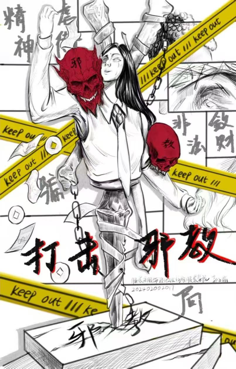 本次活动以“远离邪教、守护青春”为核心,紧扣反邪教宣传教育主线,通过绘画形式传递反邪理念。活动期间,参赛者结合自身专业特长与创意想法,多采用手绘或板绘形式进行创作,以手绘、板绘为主要形式,用色彩与线条构建出鲜明的反邪叙事。通过描绘破碎的家庭场景、扭曲的人物形象与明暗色调的强烈对比,直观地呈现出邪教阴影下的压抑与科学阳光下的活力,画面极具冲击力。活动负责人从主题契合度、艺术表现力、内容导向性等维度对参赛作品进行综合评审,最终筛选出兼具思维性与艺术性的优秀作品,并对获奖作品进行统一拍照留存。