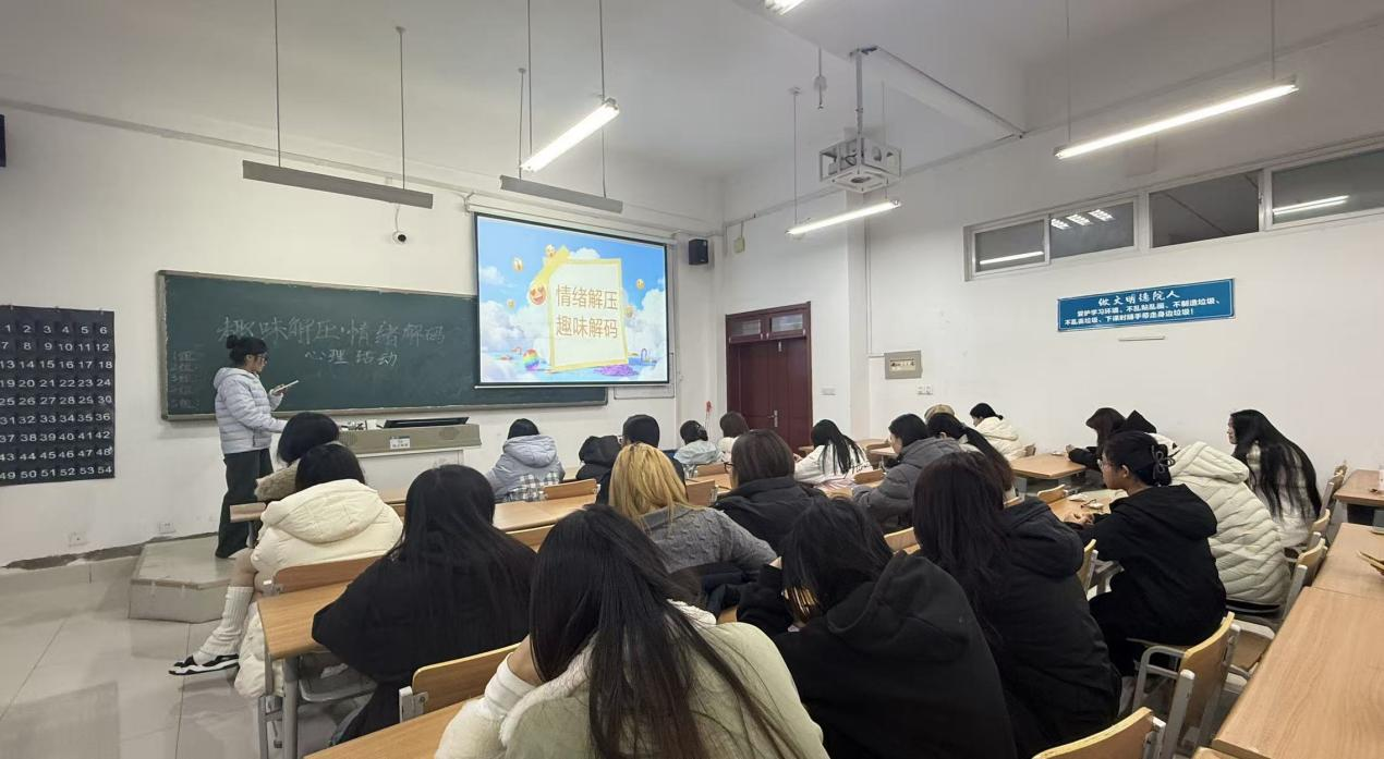 为缓解学生学业焦虑与生活压力,进一步增强学生情绪管理能力,营造积极健康的校园氛围。11月16日,纺织服装学院在明理楼0143教室开展“情绪解压,趣味解码”的心理活动,我院学生积极参加。