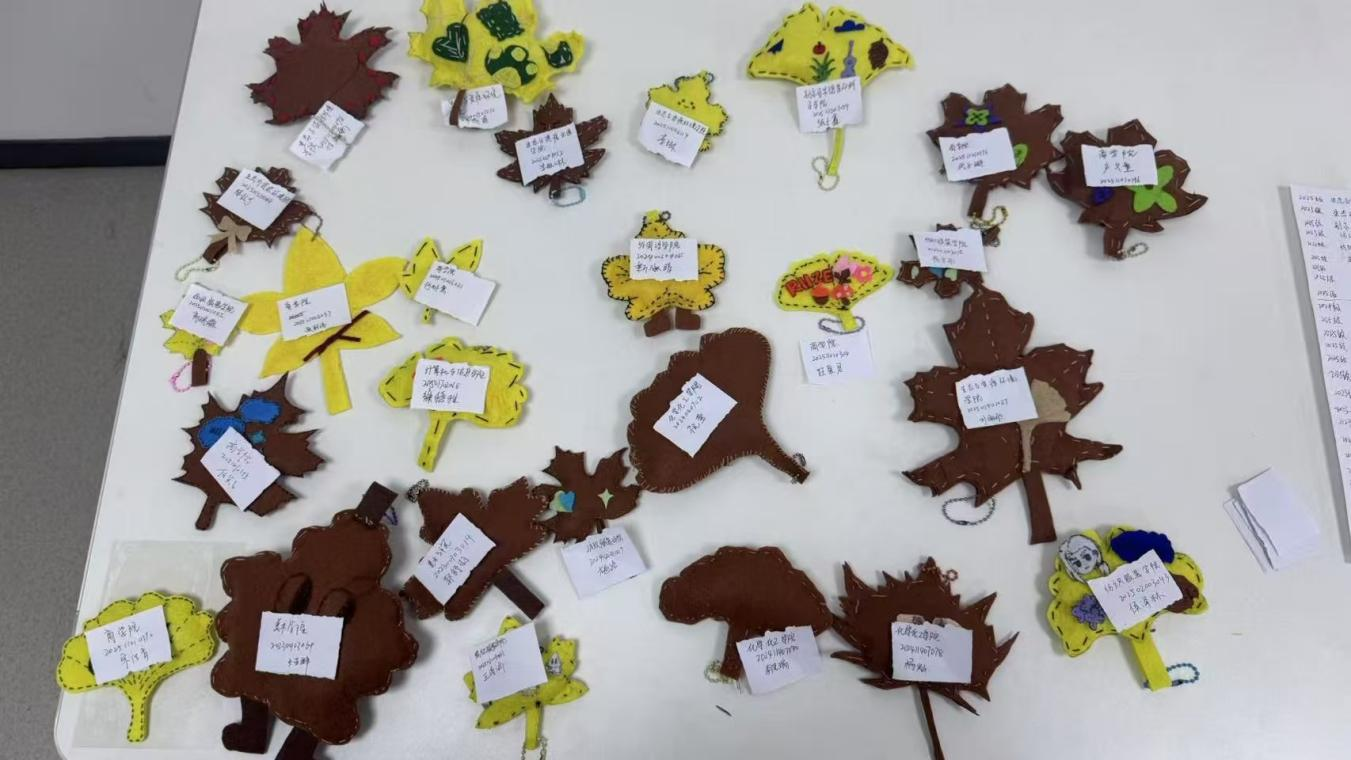 巧手完工呈佳作,陈列互鉴促提升。经过一番制作,一件件精美的枫叶挂饰顺利完成。活动接近尾声时,活动负责人对作品进行整理筛选,挑选出工艺精细的优秀作品,在活动现场陈列展示,让同学们在欣赏和学习中进一步提升自己的创作水平。