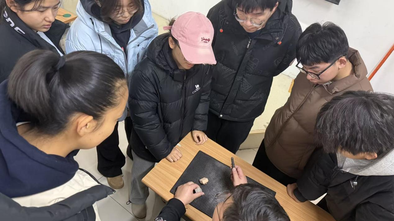 刻石传韵授技法,匠心笃行悟初心。负责人通过图文讲解与实物展示,向同学们系统介绍了印章文化的历史渊源、篆字的演变脉络及篆刻的核心技巧,详细演示了篆字布局、执刀运刀、打磨修整的完整流程,让大家深刻感受传统篆刻艺术的独特魅力与文化底蕴。随后,负责人手把手指导学生实践操作,针对执刀姿势、刻制力度、线条把控等难点问题耐心解答、细致纠正,同学们快速掌握技巧、破解难题,现场学习氛围浓厚。