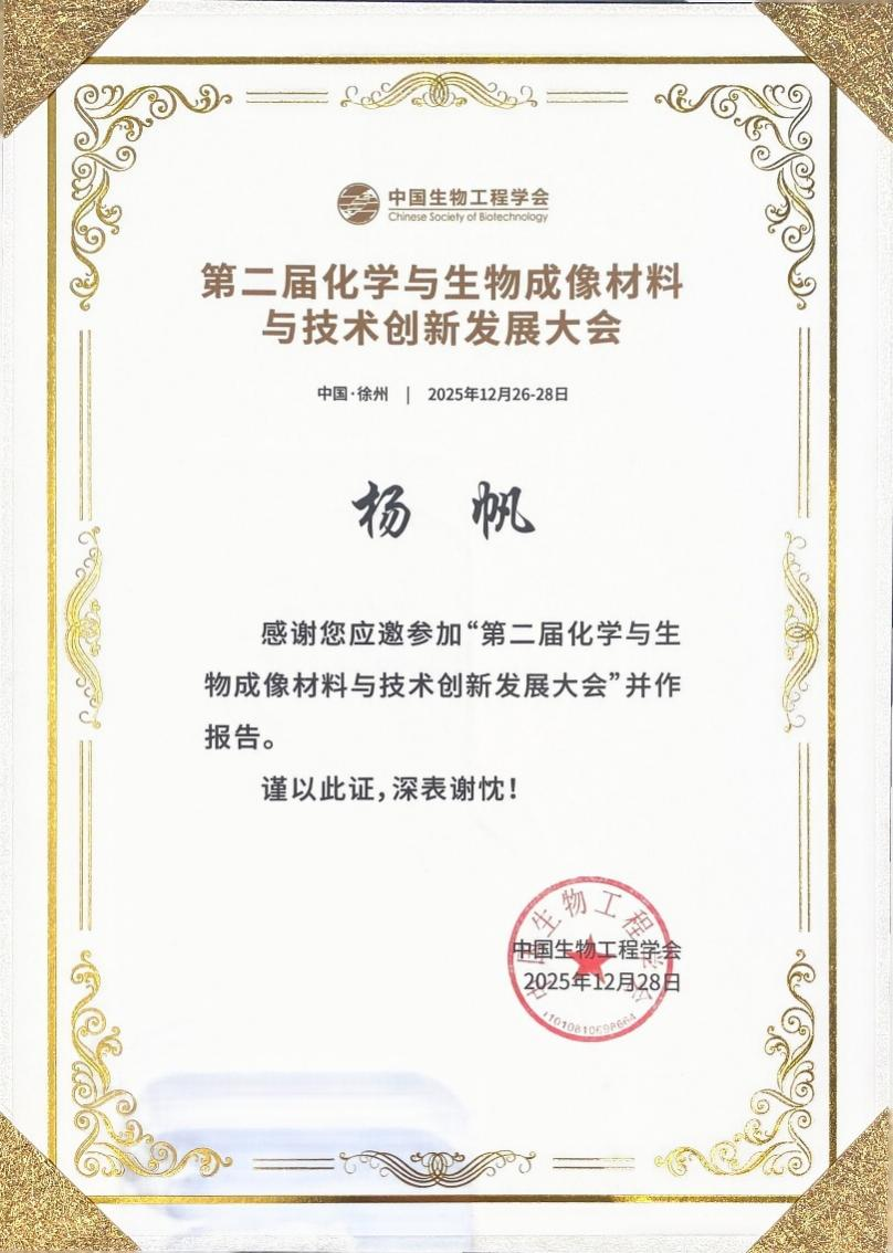 近日,第二届化学与生物成像材料与技术创新发展大会在江苏徐州隆重召开。我院纺织服装学院杨帆副教授应邀参会,与来自全国高校、科研院所及医疗机构的专家学者开展深入学术交流。