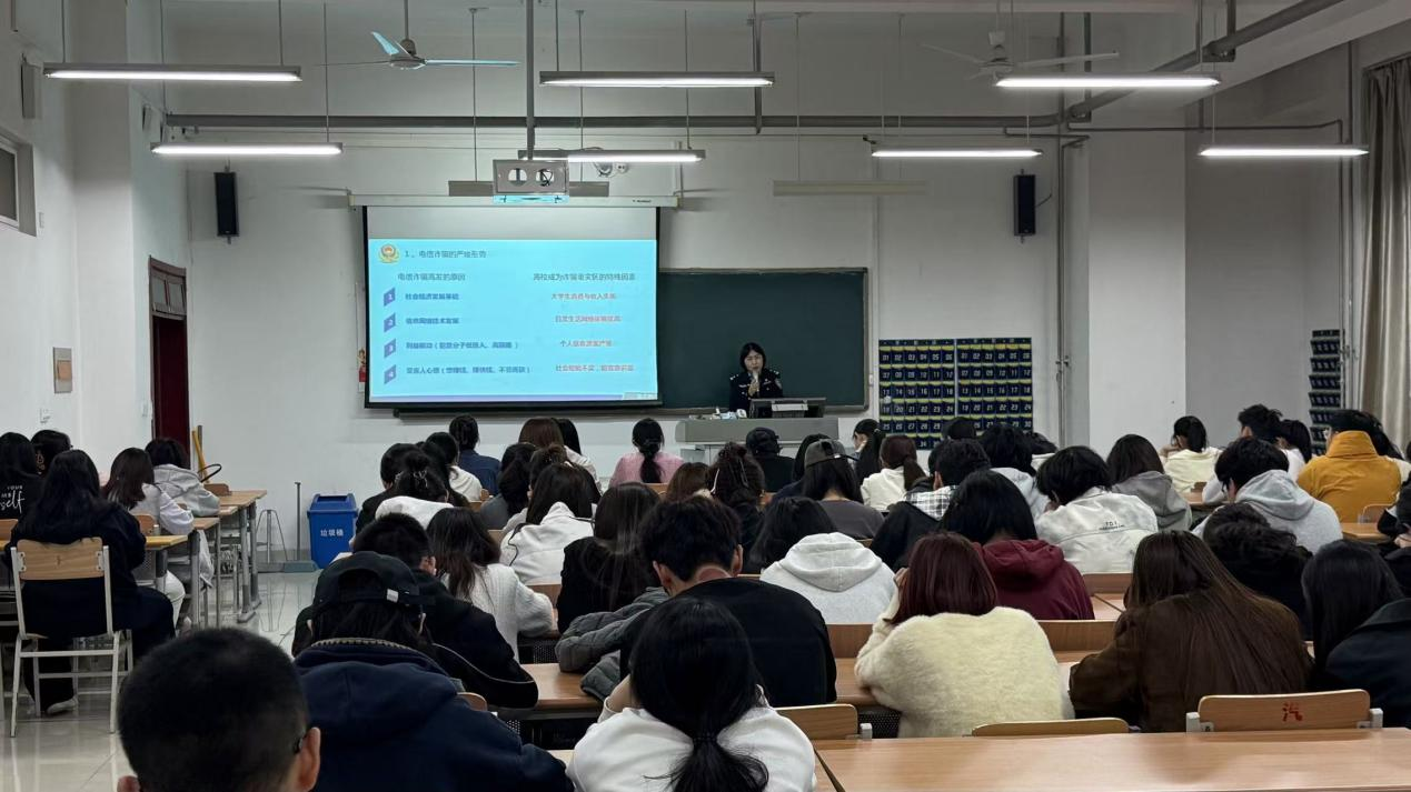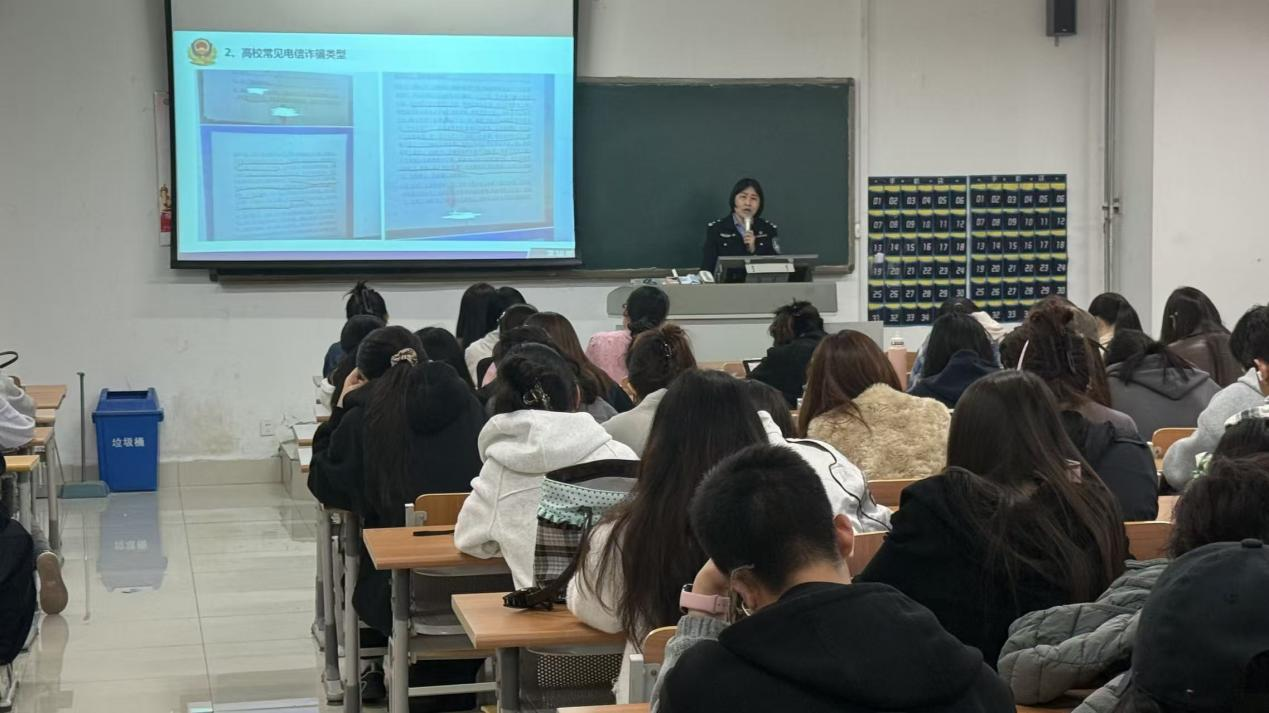 宣讲现场,民警结合校园反诈实际,围绕当前高校高发的电信网络诈骗类型、作案手段及防范技巧进行了详细讲解。针对刷单返利、网络贷款、虚假中奖等学生群体易受骗类型,民警逐一剖析作案套路,揭露诈骗分子的隐蔽话术与特征。同时,重申“不轻信、不透露、不转账”的反诈核心准则,提醒师生妥善保管个人身份信息、银行卡、验证码等,切勿点击陌生链接或向陌生账户转账。接下来,民警重点解读了帮助信息网络犯罪活动罪,指出出租、出借、出售个人银行卡、电话卡均属违法行为,涉案将承担法律责任,并可能影响个人征信。这警示全体师生不要贪图小利、不要成为电诈的“工具人”。在场学生表示,通过此次宣讲切实掌握了反诈防范技能,进一步提升了他们的安全意识和法治意识,让他们对各类诈骗手段有了更清醒的认识。