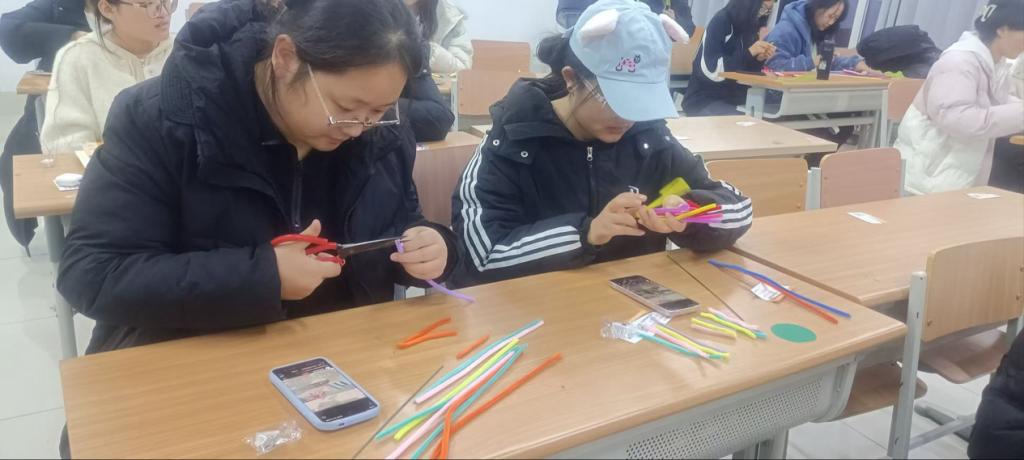 为丰富校园文化生活,激发学生创意灵感,提升动手实践能力,12月7日,纺织服装学院e漫DIY手工创意坊在明理楼0143教室举办“烟花绽放·扭扭棒巧作”主题DIY活动。