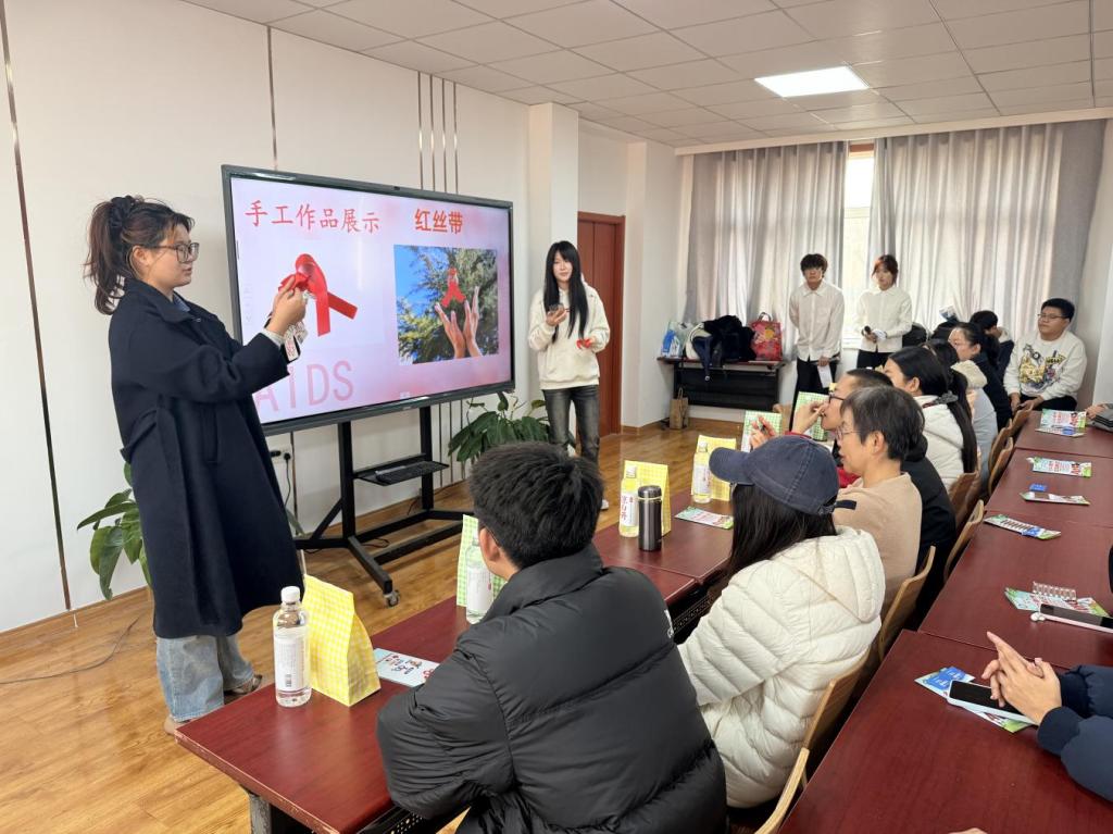 为提升青年学生艾滋病防范意识,传播科学防艾理念,11月30日,纺织服装学院师生在大学生一站式事务发展中心参加“社会共治,守正创新,终结艾滋”主题活动。